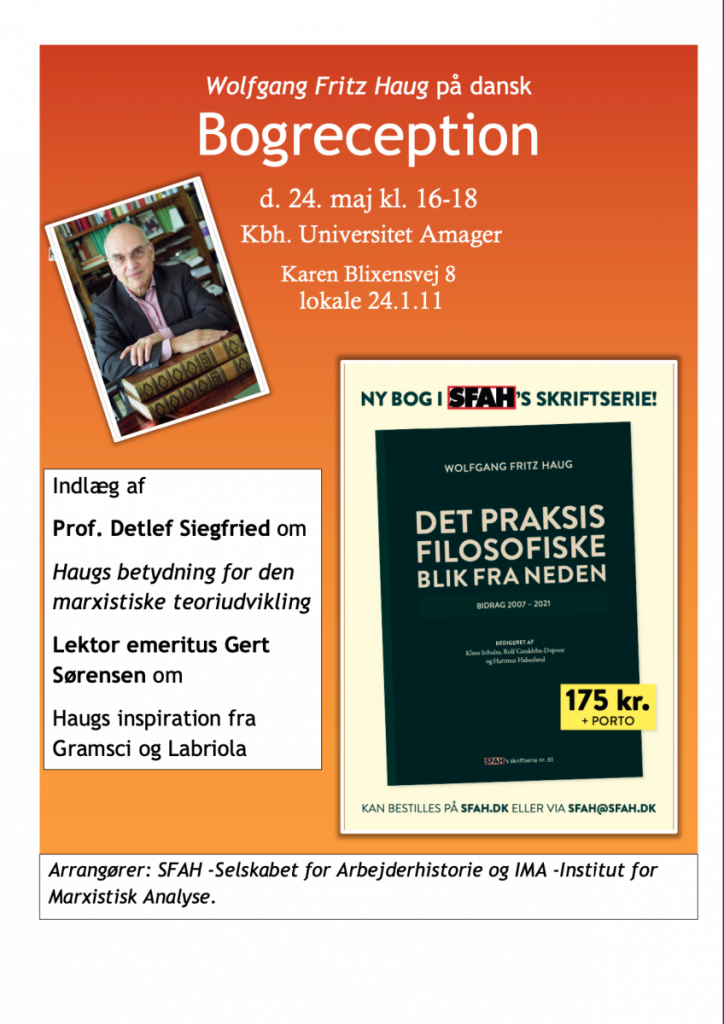 Indlæg af professor Detlef Siegfried om W.F. Haugs betydning for den marxistiske teoriudvikling og af lektor emeritus Gert Sørensen om Haugs inspiration italienske Antonio Gramsci og Antonio Labriola.