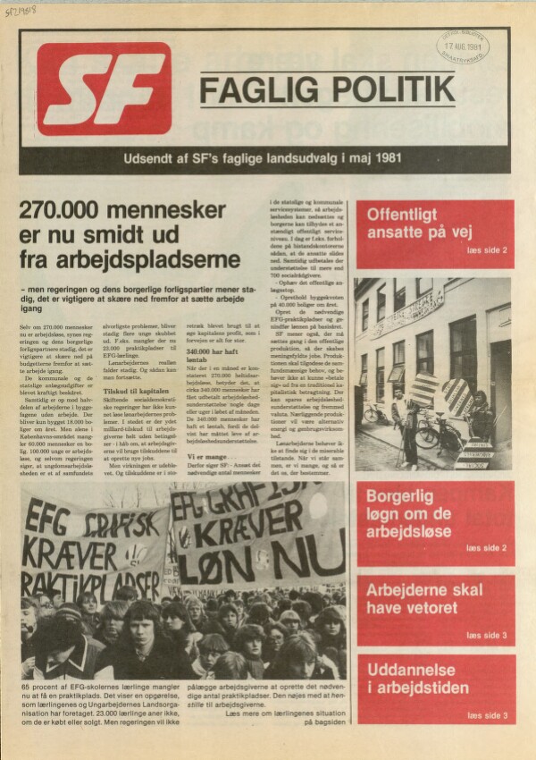 Rasmus Ravnholdt Johnsen (kandidat i historie ved KU) har skrevet om SF’s faglige profil i årene 1959-1980 – og de store forandringer, som partiet gennemgik i denne periode. Specialet undersøger SF’s (institutionaliserede) forhold til den traditionelle arbejderklasse.