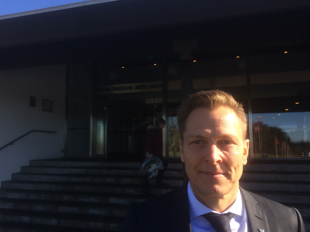 Dannebrogsflagene blafrer i den tidlige forårssol hele vejen ad tilkørslen op til Dansk Metals kursusejendom i Jørlunde ved Slangerup. Der er fest i anledning af skolens 50 års fødselsdag tirsdag den 20. marts 2018.